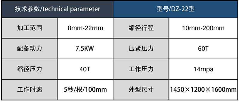 1、本機床屬于無切削加工設備,具有生產效率高、易于操作、節省原材料、質量穩定等優點。它是利用液壓技術將圓鋼等須縮徑部位送入專用模具內,